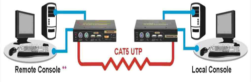 透过CATx UTP线材,可延伸KVM讯号达150公尺远
