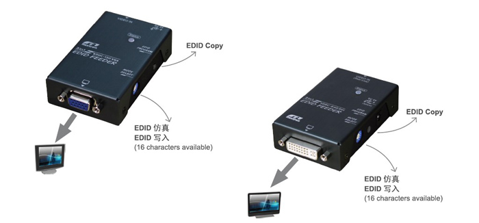 EDID FEEDER允许系统从兼容EDID显示器中拷贝EDID,然后可以在任何时候提供给所连接的主机,如果您显示器的EDID不可用,EDID FEEDER可以提供您专用的的EDID数据给显示器,和你所连接的设备达到完美匹配。EDIDFEEDER不仅可以让用户防止黑屏和启动问题,也能解决因EDID信息缺失而